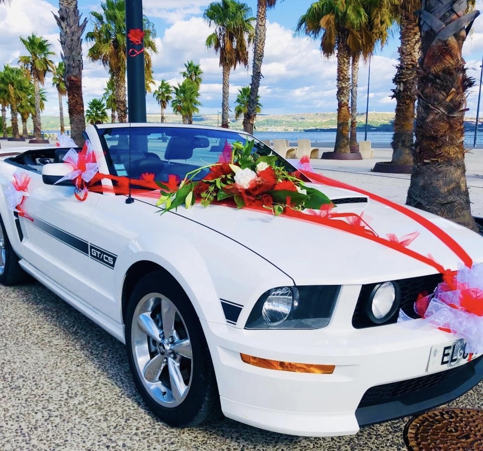 Imaginez-vous glissant à travers les routes ensoleillées de la région, le toit décapoté de la Mustang laissant entrer la douce brise méditerranéenne, tandis que vous vous dirigez avec style vers le lieu de votre cérémonie. Le choix d'une Mustang Cabriolet ajoute une touche de sophistication à votre journée spéciale, alliant puissance et grâce de manière inégalée.