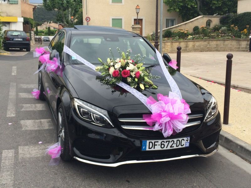 -décoration incluse sauf le bouquet sur le capot qui reste à la charge des mariées, car à la fin de notre prestation cela vous permet de le récupérer et de le positionner sur votre table d'honneur.