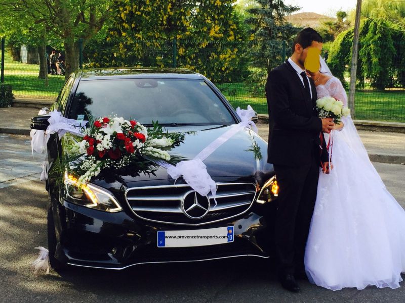 Pour votre mariage , nous vous récupérons à votre domicile , nous ouvrons le cortège jusqu'aux différents lieux de cérémonies , des photos puis jusqu'au lieu de la réception , nous sommes à votre entière disposition, nous évoluons sur le secteur des bouches du rhone,Var, Vaucluse . Location de voiture pour mariage en mercedes classe e